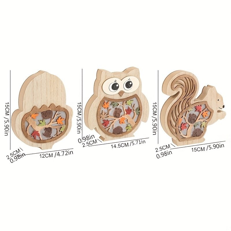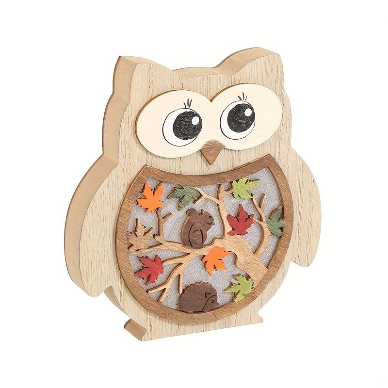 Home > 1pc, Creative Wooden Crafts Owl Squirrel Ornaments, Wooden Animal Maple Leaf Acorn Home Decoration, Suitable For Office Decoration, Bedroom Decoration