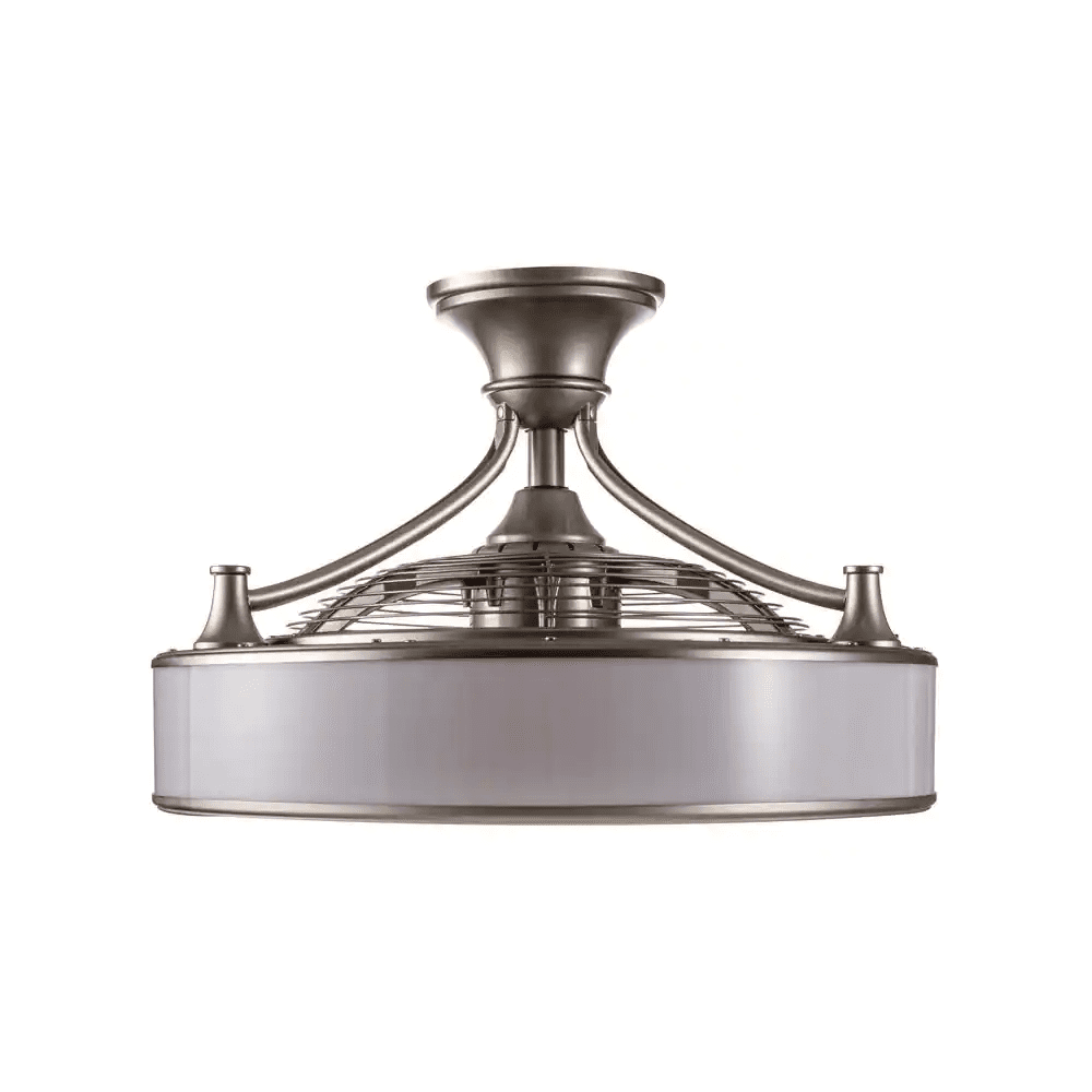 Product Details22" LED Indoor/Outdoor Ceiling Fan with Cover features a modern brushed nickel ceiling fan and LED light combination for better cooling. It features a lifetime dimmable LED light strip so you don't have to worry about changing bulbs. 3 speeds make it easy to maintain the perfect airflow with remote control operation. This sleek, space-saving fan can be used not only indoors, but also in covered outdoor spaces. With no exposed leaves, it's perfect for a kids' room, kitchenette, dining room or home office. The 22" Enclosed Ceiling Fan and LED Light Combo has a modern brushed nickel finish, the motor is backed by a lifetime warranty and includes a remote control and operator's manual.three metal bladesreversible motorConvenient LED light bar prevents bulb changes3 gears handheld remote controlSpace-saving design is perfect for small roomsDecorative top cap ring and connection cap hides any exposed screwsDesigned for indoor and covered outdoor spacesSPACIOUS ROOM: Room measures over 20' x 20' with 14" blade.Use the included 81 LEDsHigh-performance reversible motor ensures powerful, quiet operation1400 CFM, Airflow Efficiency (cubic feet per minute per watt): 31.32Brightness: 1000 lumensLight color temperature: 2700K (warm white)​