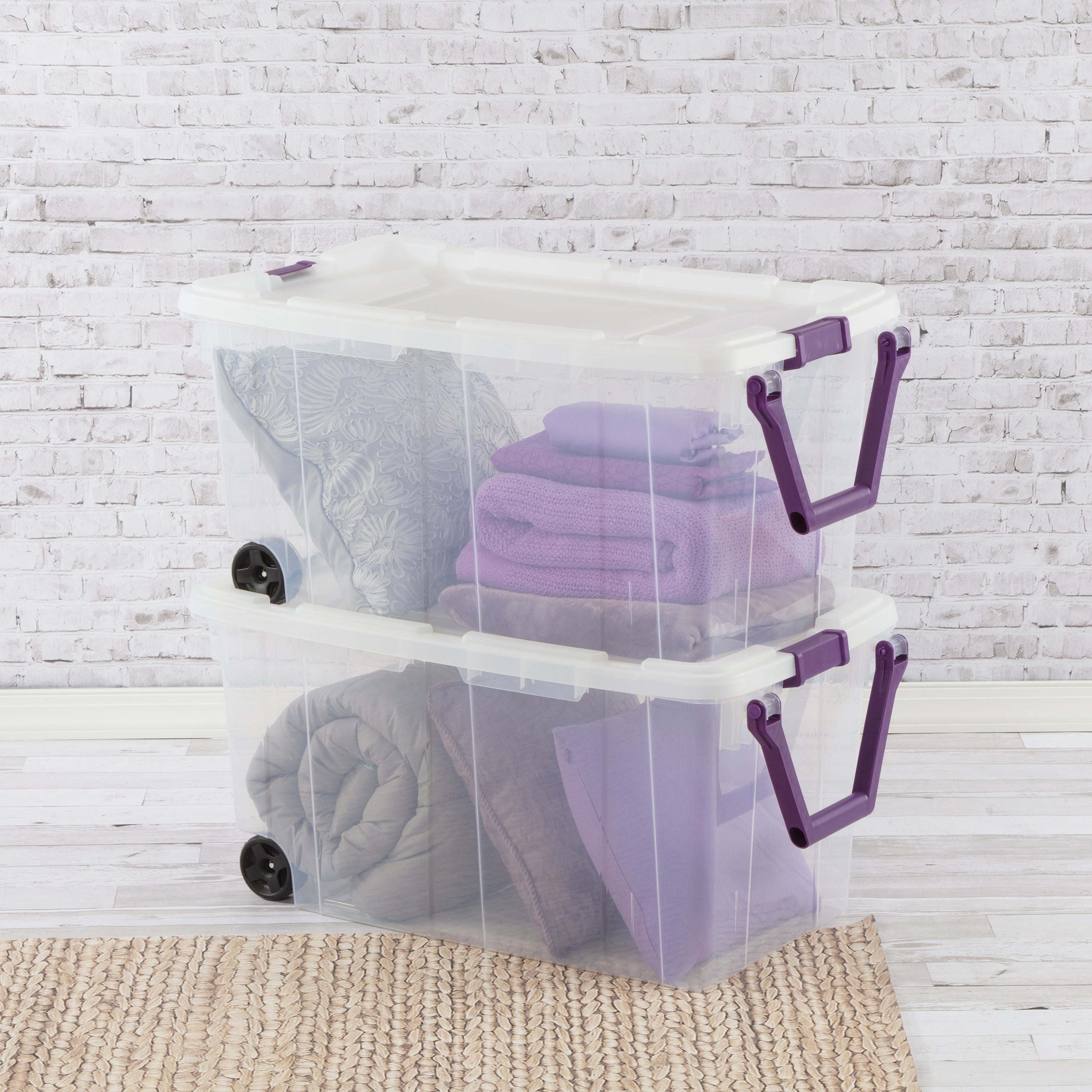 40 Gallon Wheeled Industrial Tote Plastic, Black, Set of 2 - Sweet Plum/Clear - 2