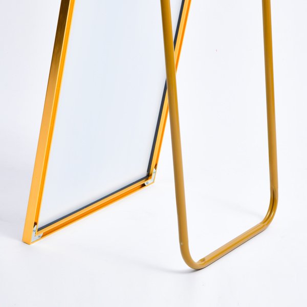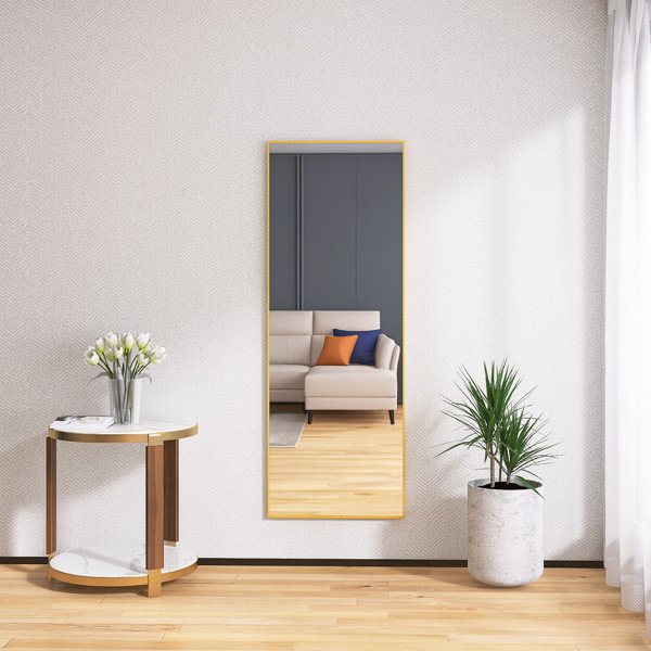 Home > 65" x 24" Wall Mounting Full Body Mirror, Full Length Mirror with Stand, Alloy Frame Full-Length Mirror for Living Room, Bedroom, Gold - as picture