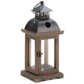 Rustic Wood Brown Candle Lantern - 9 inches