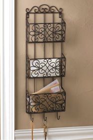 Black Iron Triple Wall Rack with Hooks