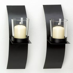 Modern Matte Black Wall Candle Holder Pair