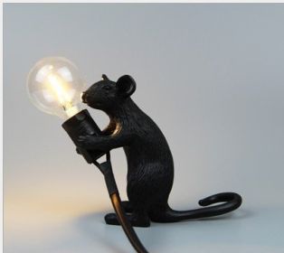 Resin Animal Mini Mouse Decorative Lamp (Option: With Light Source-Black Standing Mouse)