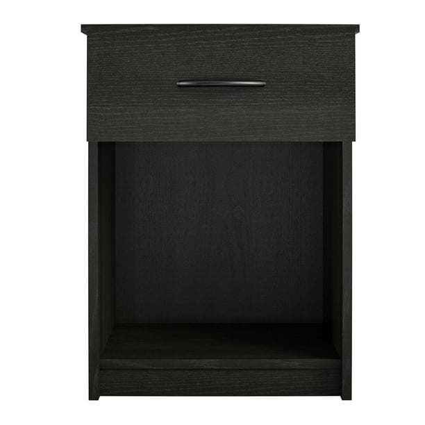 Add convenience and style to your bedroom with the Nightstand with Drawer. This practical piece of furniture offers extra storage space while seamlessly blending with any existing decor, thanks to its traditional and simple design and black oak woodgrain finish. Constructed from laminated particleboard, this nightstand offers a cost-effective solution that doesn't compromise on trendiness or functionality. The bottom cubby provides a perfect spot for storing books or magazines, while the drawer offers concealed storage for personal items. The top surface can be utilized to hold a lamp or display decorative accessories, adding an extra touch of flair to your space. The nightstand is shipped flat to your door, and assembly is required upon delivery. Keep your bedroom essentials within arm's reach with this versatile nightstand that combines practicality and style effortlessly.