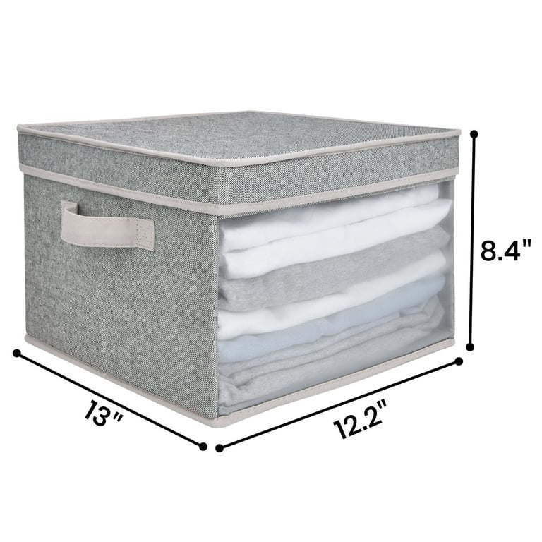 Collapsible Storage Box with Lid, Closet Fabric Collapsible Storage Box, Stackable Containers with PVC Window, 3-Pack - Grey