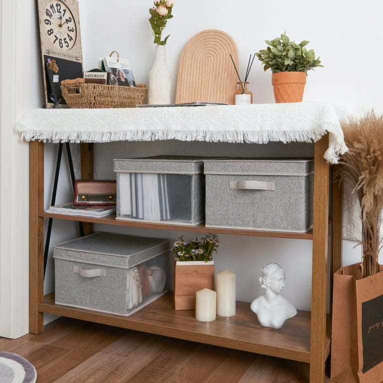 These storage boxes are the perfect solution for your home organization and are essential for dorm residents, apartment renters, small homeowners, and more. The traditional style, soft colors and clean lines of these storage boxes blend perfectly into your home, while the textured fabric adds a fresh pop of chic. They are perfect for storing a variety of items including sweaters, towels, books, magazines, toys, clothes, blankets on any shelf, closet, or tabletop. They are the perfect size for any room or anywhere in your house, office, or dorm.