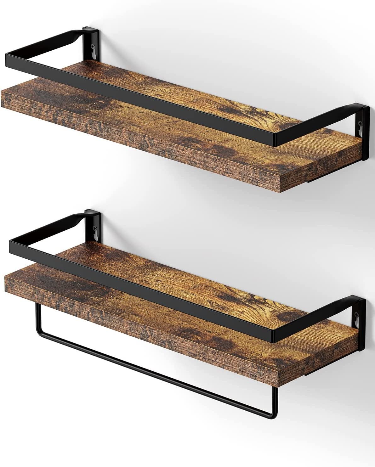 4. RETRO CLASSIC DESIGN - Clear textured wood wall shelf panels and powder coated metal brackets create a retro classic style.