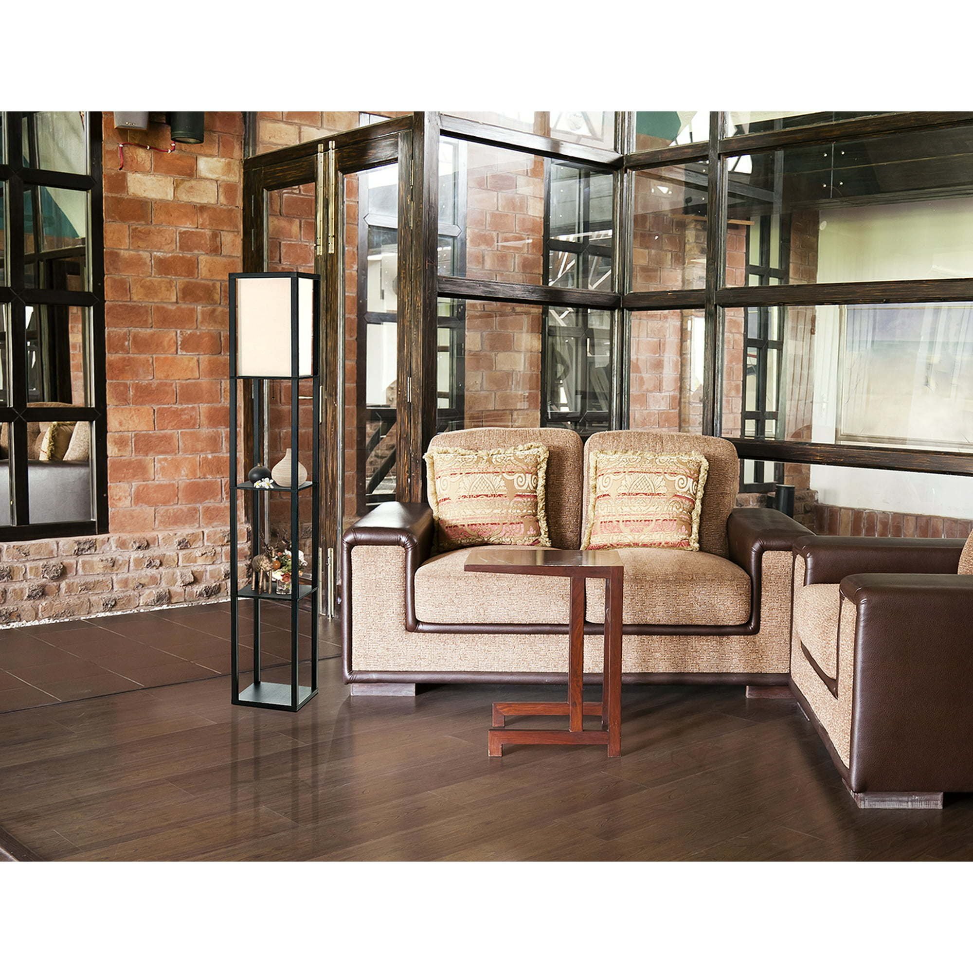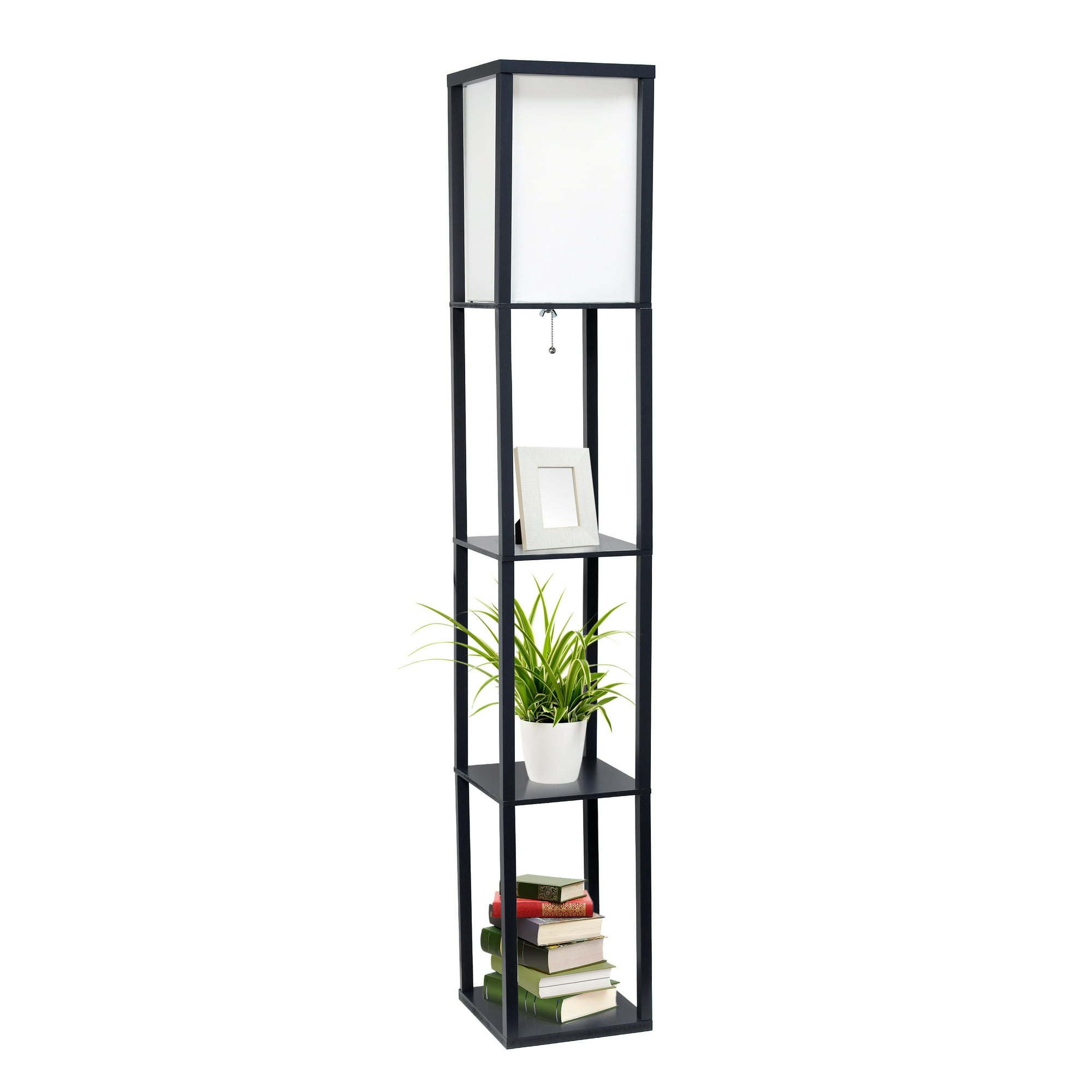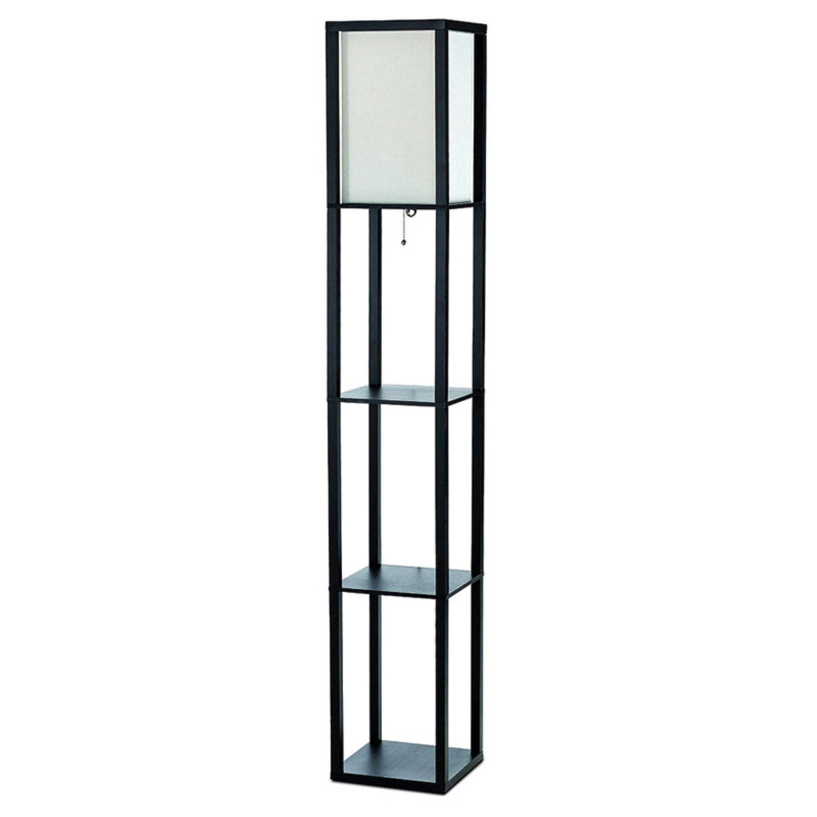 Home > Floor Lamp Etagere Organizer Storage Shelf with Linen Shade, Black - Black
