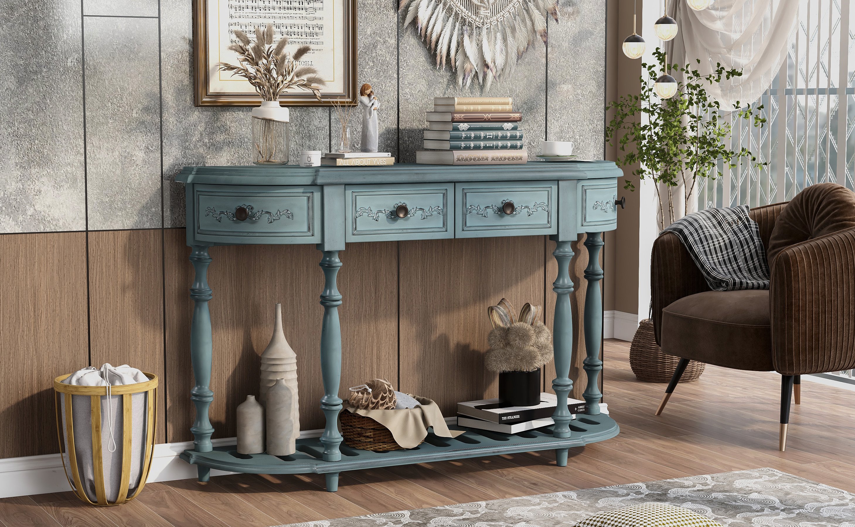 Modern and Contemporary Curved Console Table Sofa Table Entryway Table for Hallway Living Room Bedroom with 4 Drawers and 1 Shelf - Antique Blue