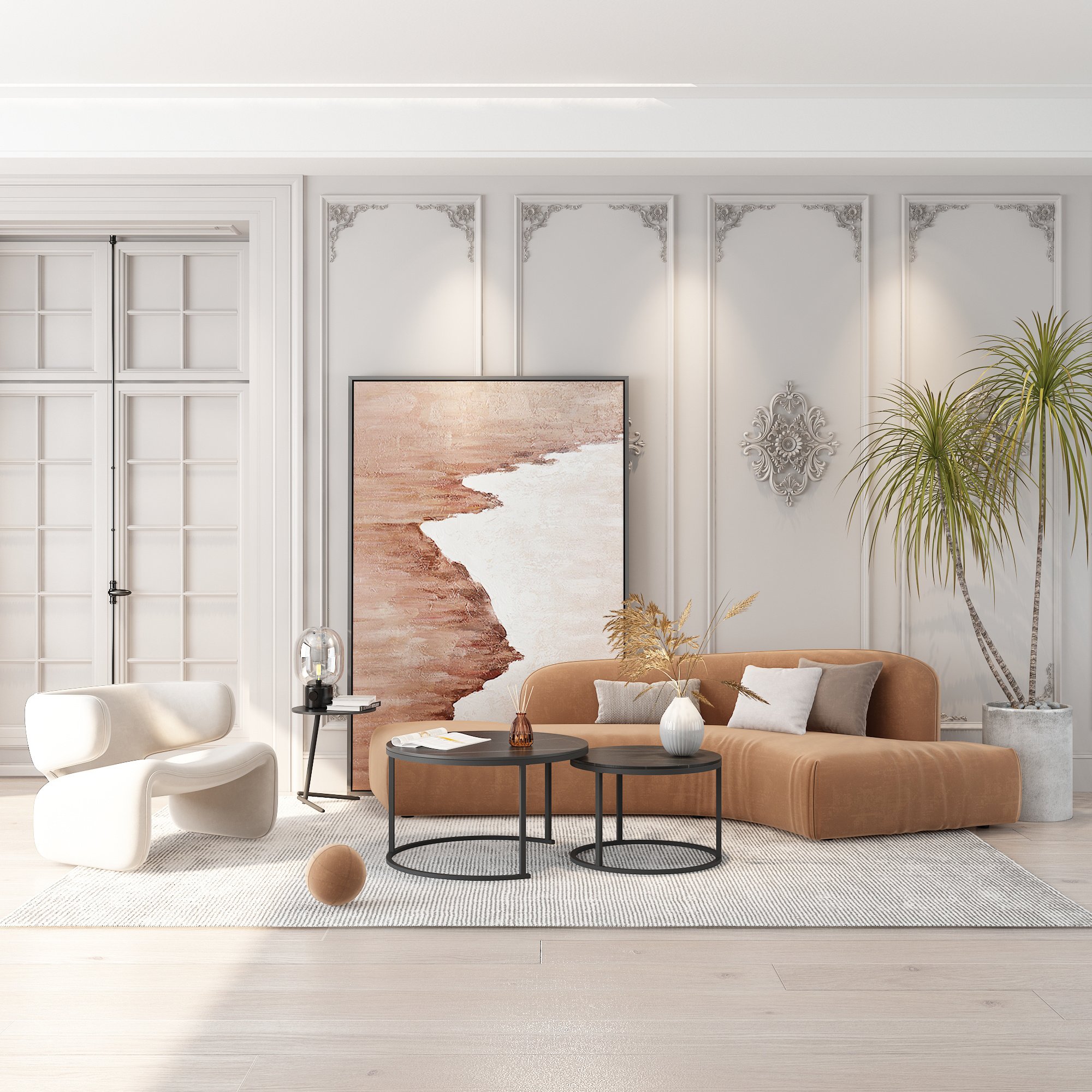 -This set of nesting coffee tables can be used separately to match different-sized spaces to unify the style of your home.