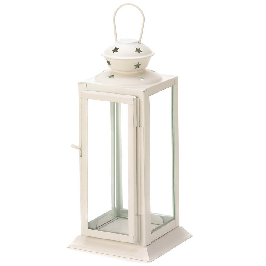 Square White Star Candle Lantern - 8 inches