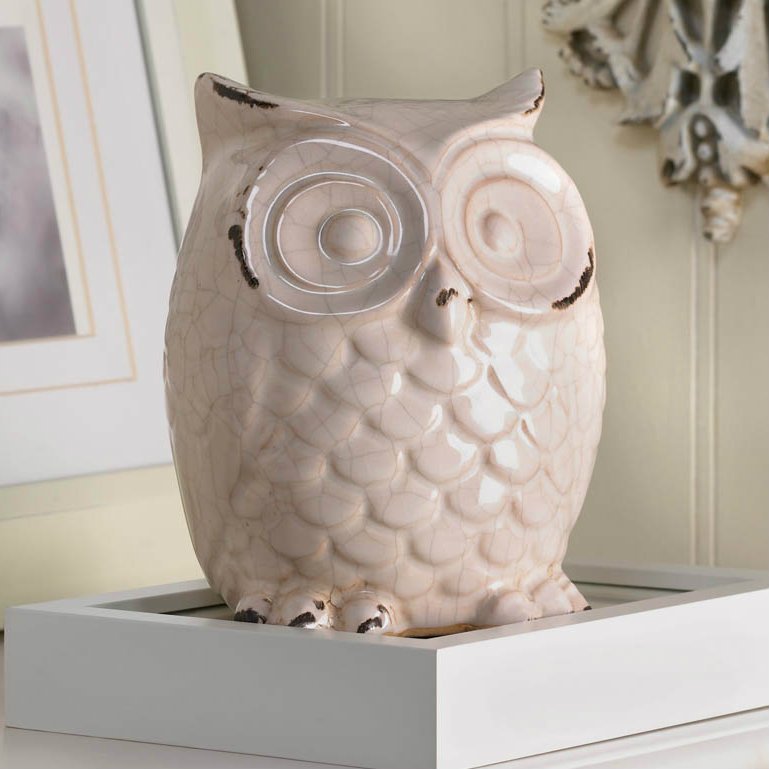 Crackle-Finish Ceramic Owl
