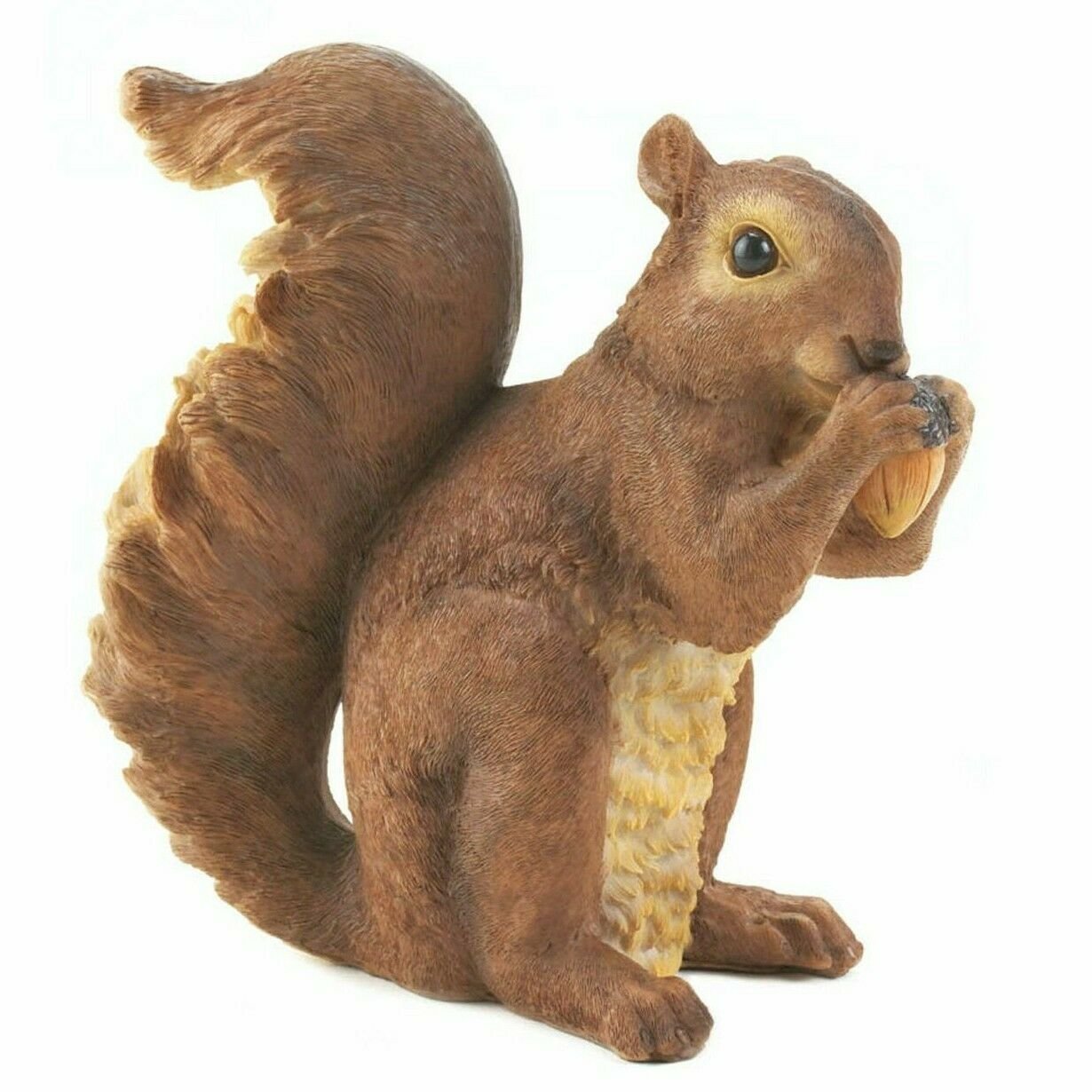 A tasty acorn is the perfect snack for this bushy-tailed squirrel. You will love the beautiful details and charming pose of this adorable garden statue. 1 pound. 6.5 x 3.25 x 6.75 inches tall. Polyresin and stone.