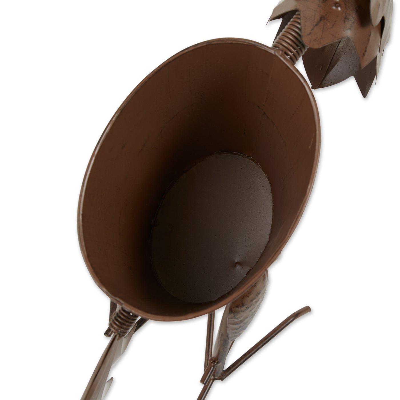 This whimsical rooster planter really struts his stuff! Made from iron with a weathered brown finish, the planter features a lone star, fun springs, and a bold tail feather. 1.4 pounds. 18 x 6 x 13 inches tall. Iron.