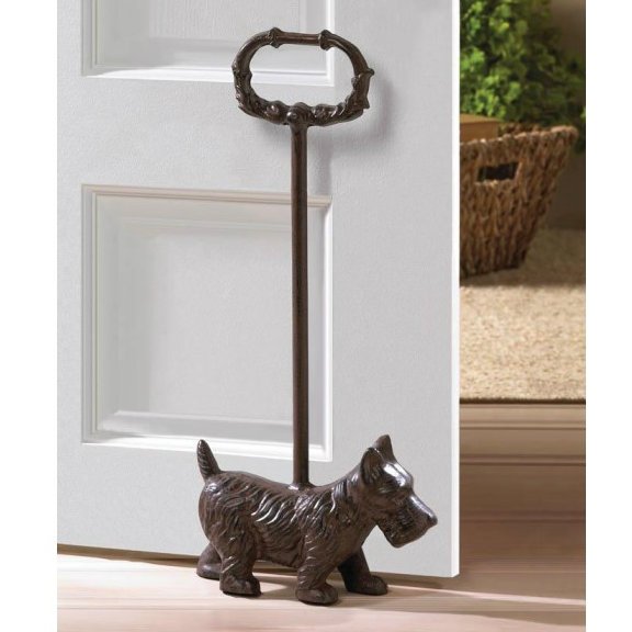 The perfect item for keeping doors from slamming closed in a breeze or just keeping the door wide open. Cast iron terrier also has a convenient and decorative handle so it's easy to move around. Cute as well as functional, it's a great gift for a dog lover. 6.2 pounds. 8.5 x 3.4 x 19 inches tall. Cast iron.