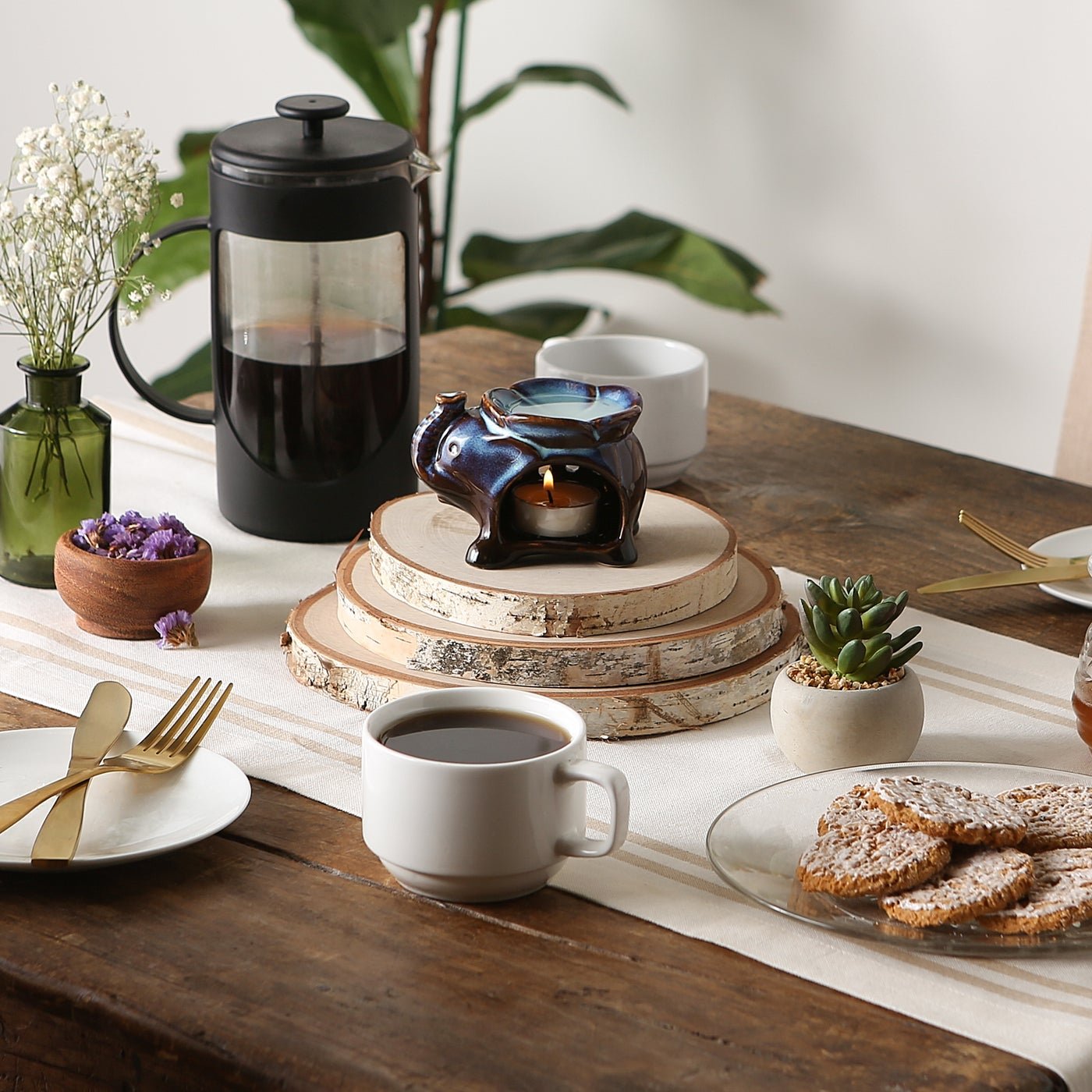 Set of 3 Porcelain Elephant Oil Warmers