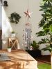 Star silhouettes and bells adorn this wind chime that has a give a clear and graceful sound. Features a bold star at the top, multiple stars and bells within the windchimes, and another star ornament hanging at the bottom. 0.8 pound. 4.75 inches in diameter x 34 inches long overall. Iron and aluminum.