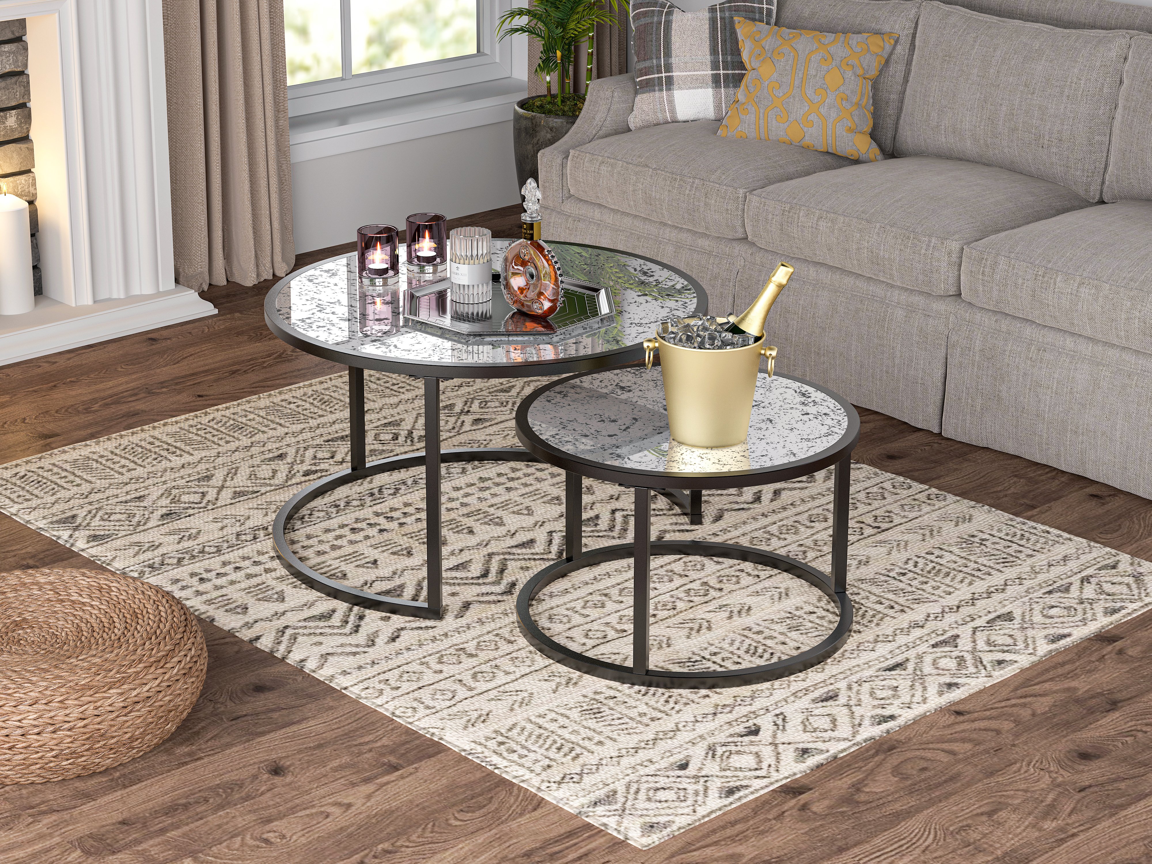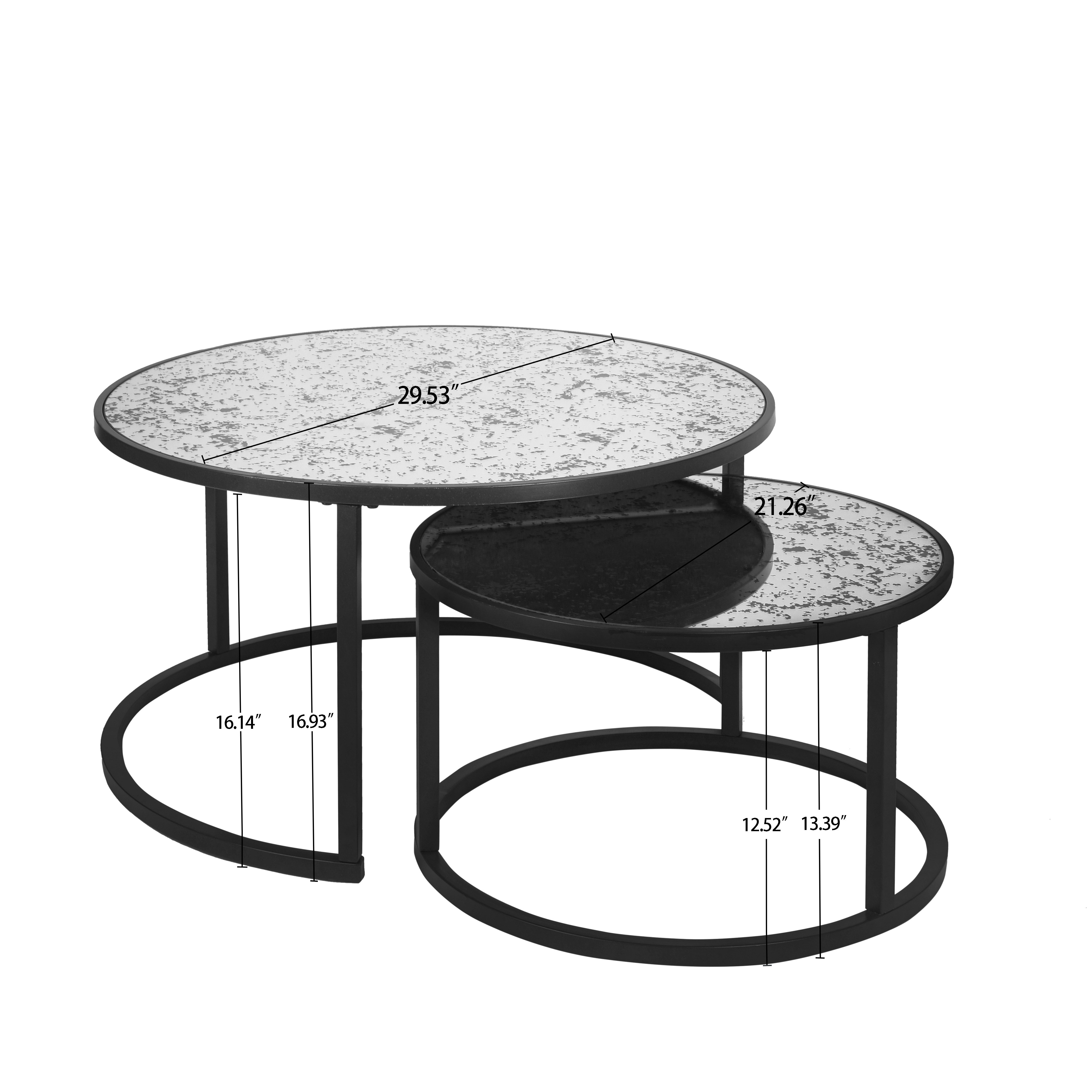 Home > Round Coffee Table Set of 2 Set of 2 Nesting Tables; Metal Frame & Glass Top End Tables for Living Room Bedroom - as Pic