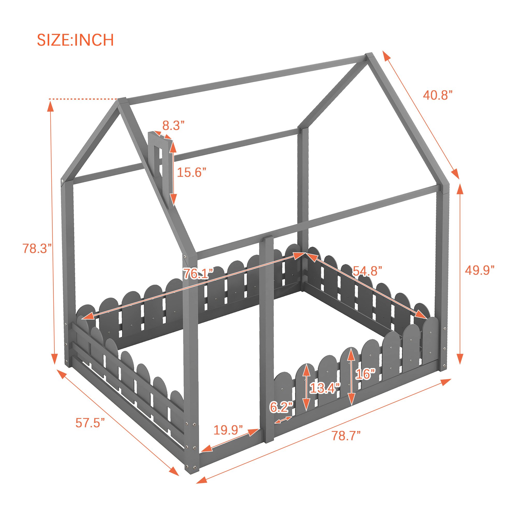(Slats are not included) Full Size Wood Bed House Bed Frame with Fence;  for Kids;  Teens;  Girls;  Boys - Gray (Slats are not included) Full Size Wood Bed House Bed Frame with Fence;  for Kids;  Teens;  Girls;  Boys - Gray (Slats are not included) Full Size Wood Bed House Bed Frame with Fence;  for Kids;  Teens;  Girls;  Boys - Gray (Slats are not included) Full Size Wood Bed House Bed Frame with Fence;  for Kids;  Teens;  Girls;  Boys - Gray (Slats are not included) Full Size Wood Bed House Bed Frame with Fence;  for Kids;  Teens;  Girls;  Boys - Gray (Slats are not included) Full Size Wood Bed House Bed Frame with Fence;  for Kids;  Teens;  Girls;  Boys - Gray