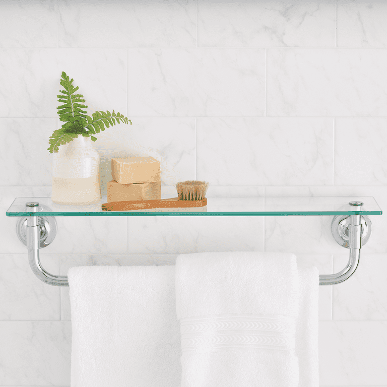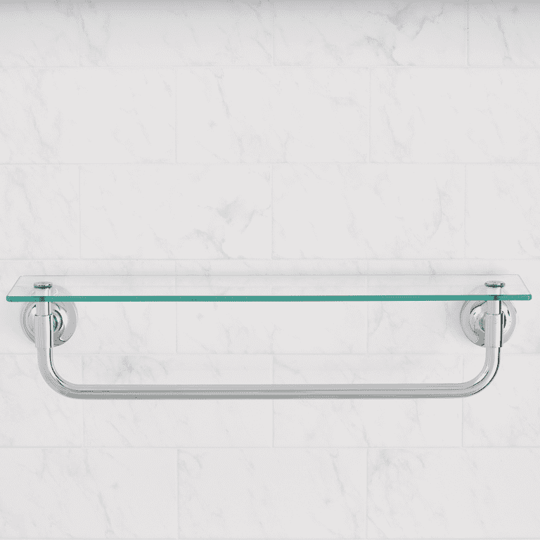 This 18 Inch Towel Bar with Glass Shelf is made of strong and durable materials so it will stand the test of time. Each package contains everything needed to hang the unit on the wall.