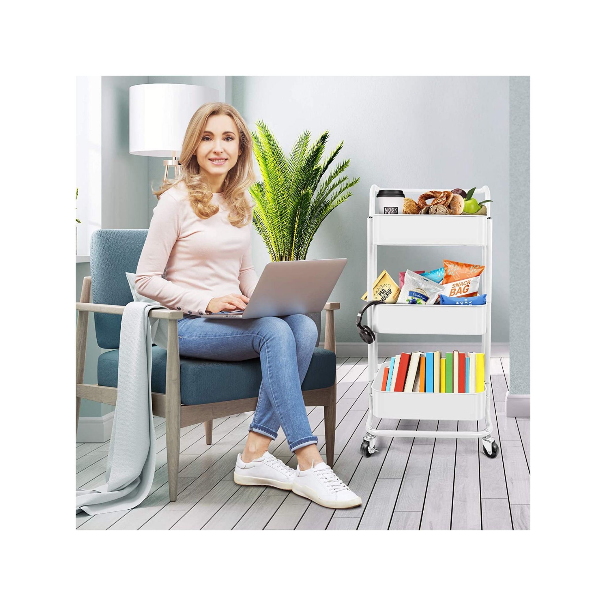 Home > Werseon Rolling Cart with Wheels Bath Cart Organizer Cart Rolling Metal Tissue Cart Handle - White - as Pic